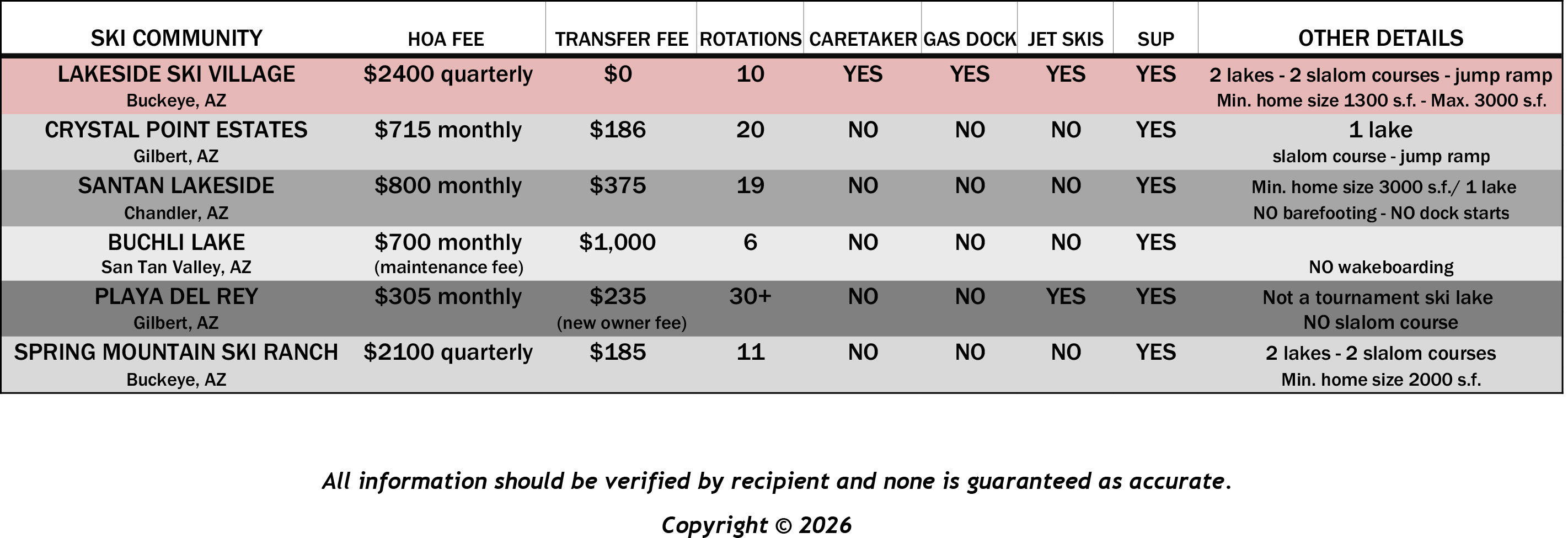 A quick glance at each of the primary ski lakes.SKI LAKE COMPARISONS